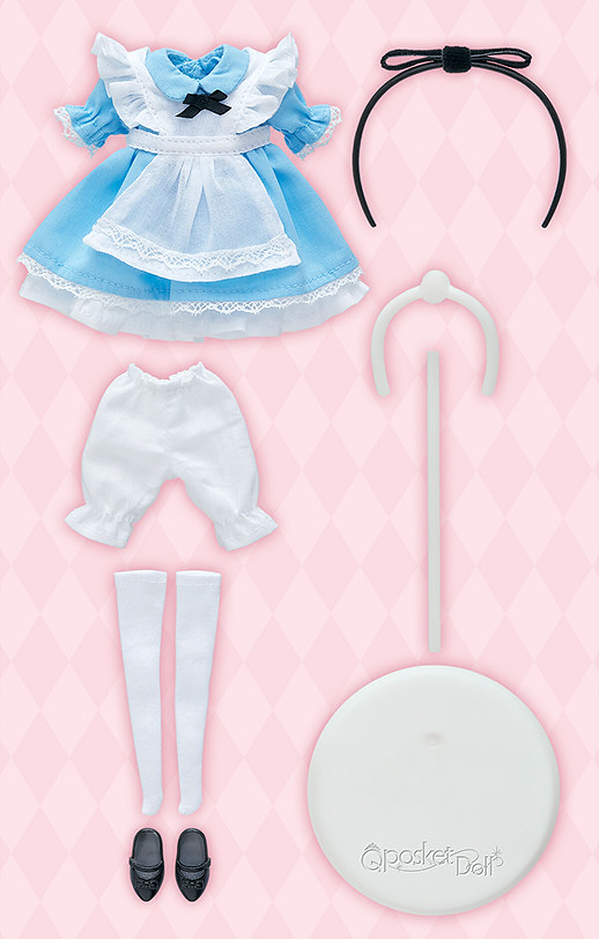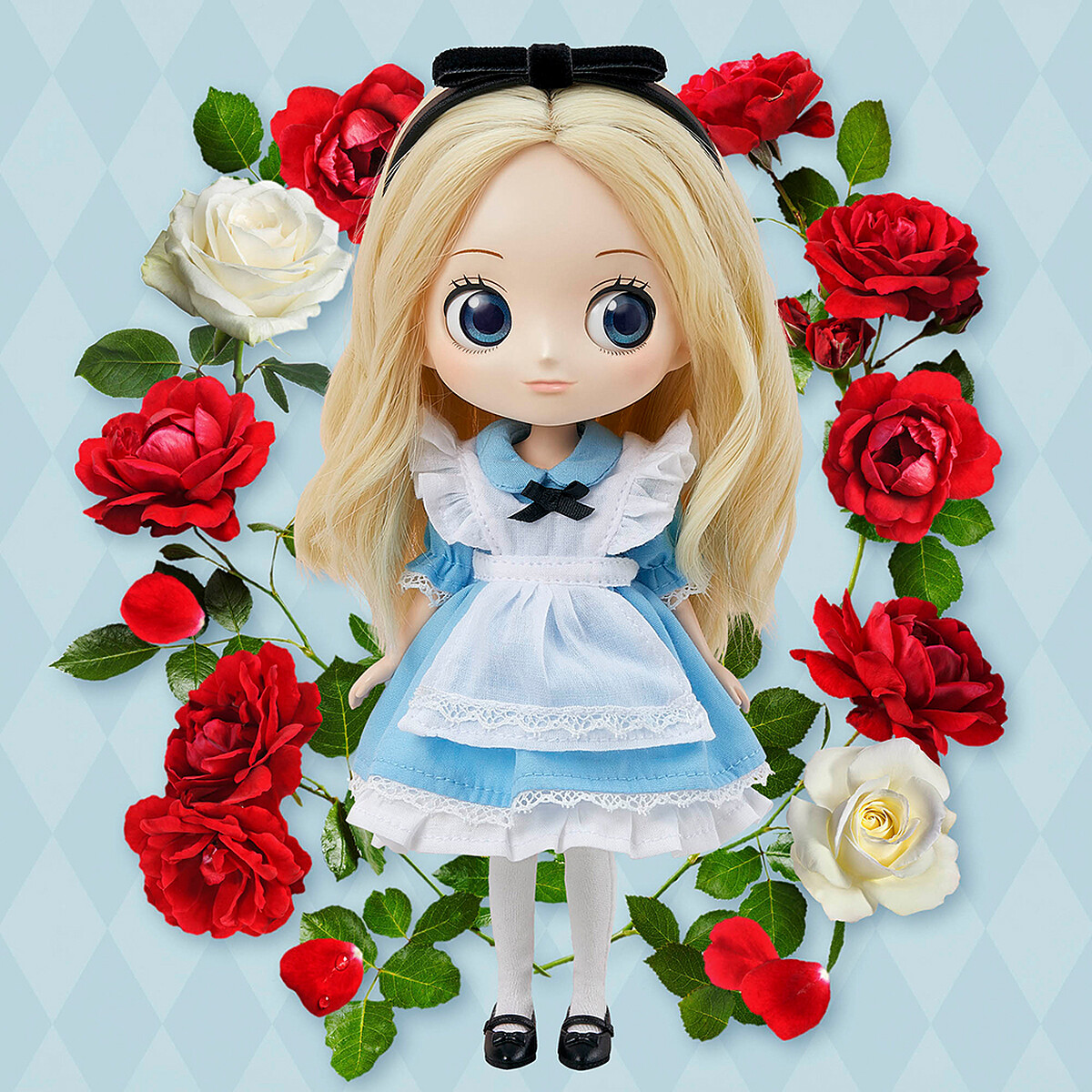 Q posket Doll中的愛麗絲還原了《愛麗絲夢遊仙境中》的造型,粉藍色的洋裝、蕾絲澎澎裙,每個細節都完整呈現,手腳是可動的設計,可以讓愛麗絲擺出不同的姿勢拍出絕世美照!