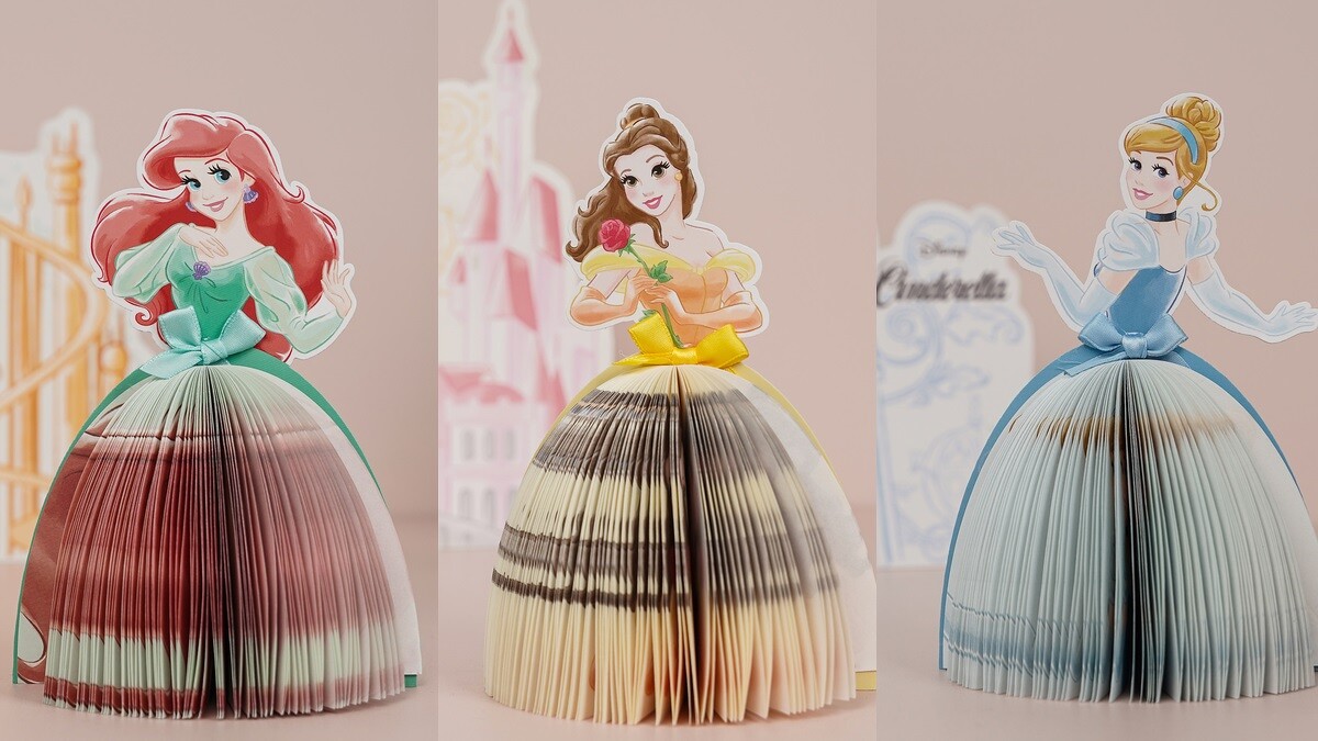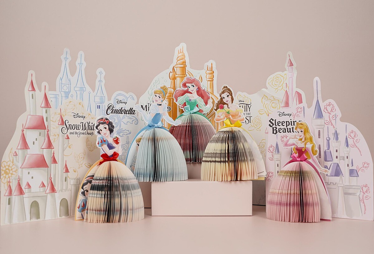 一次擁有愛麗兒、貝兒、仙度瑞拉、樂佩、奧蘿拉、白雪公主,限定新品「公主造型蓬蓬裙便條紙」將紙張化身公主的華麗蓬蓬裙,公主造型便條紙兼具實用功能,更搭配不同公主元素的童話城堡,一起放在桌上真的超夢幻!