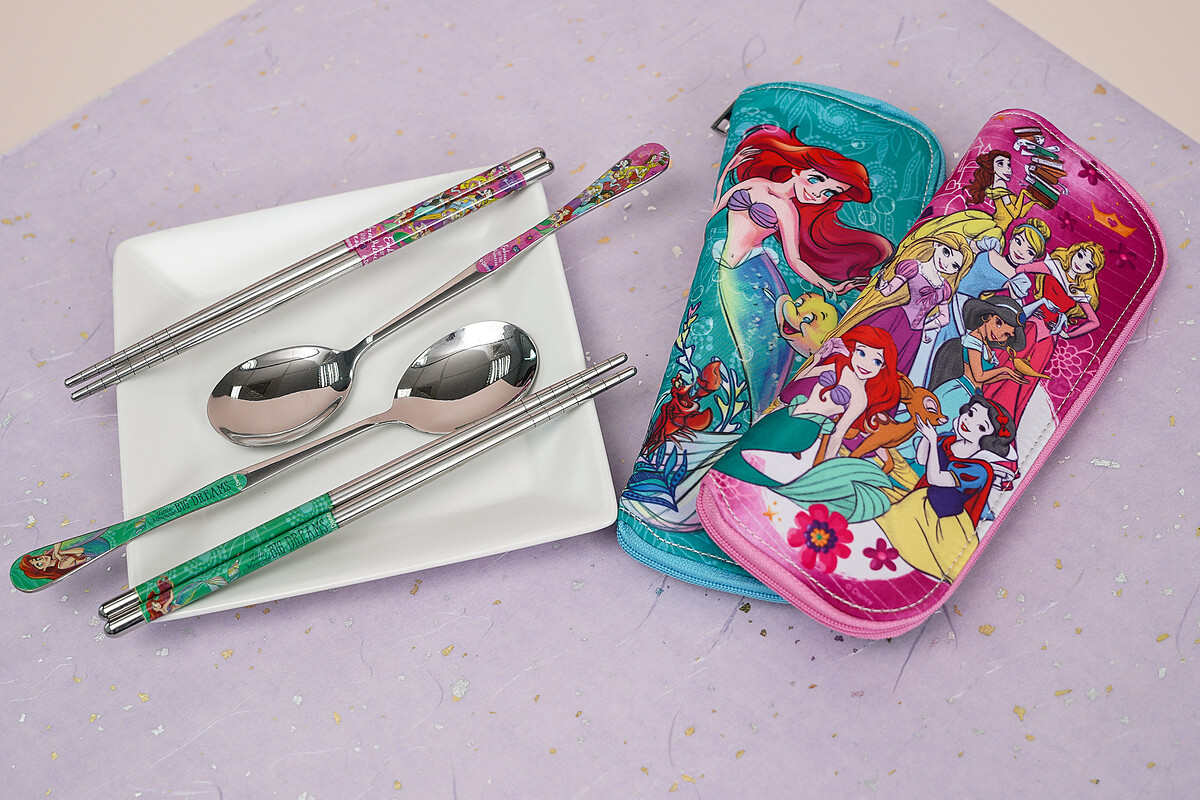 一起環保愛地球,在迪士尼公主快閃店中推出「公主系列環保餐具」,且帆布外層易清洗,內含筷子、湯匙,實用美觀兼具!