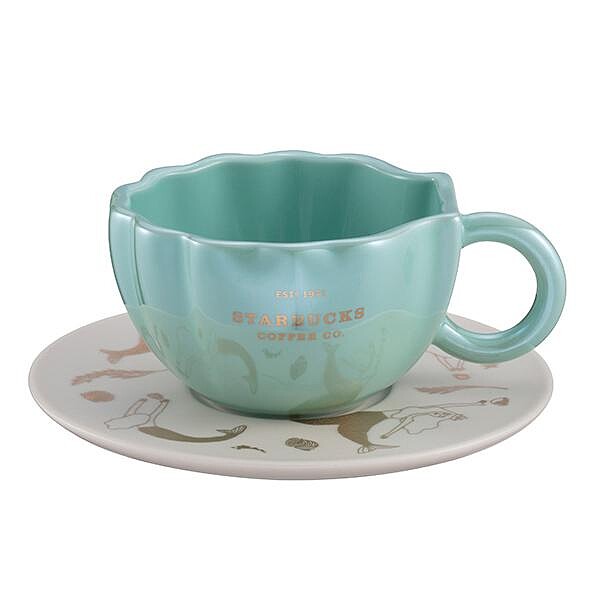 貝殼人魚杯盤組,售價$600,89ml。