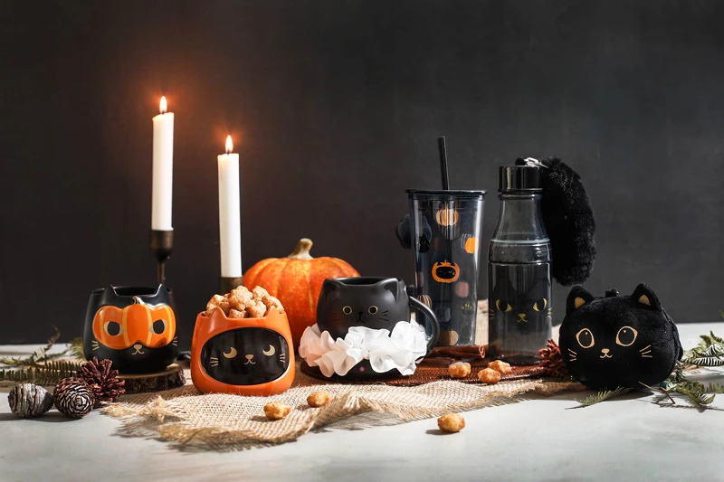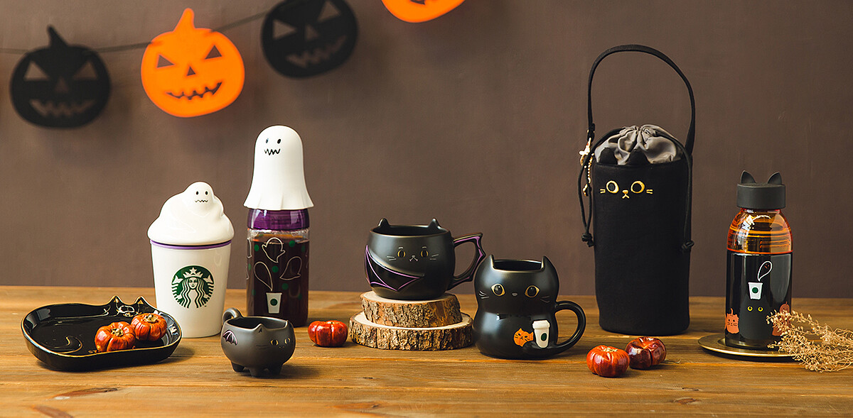 星巴克的萬聖節商品少不了永遠只有更可愛的黑貓們,今年眨著大眼神秘現身,以華麗復古或是冷酷的可愛裝扮,化身為包裝食品及各式商品俏皮到來。