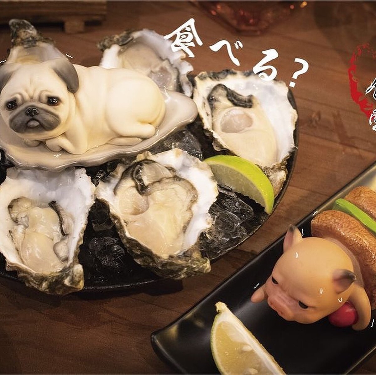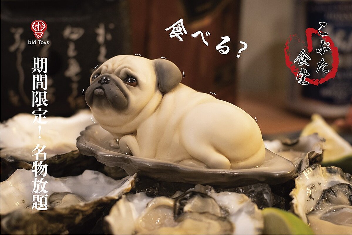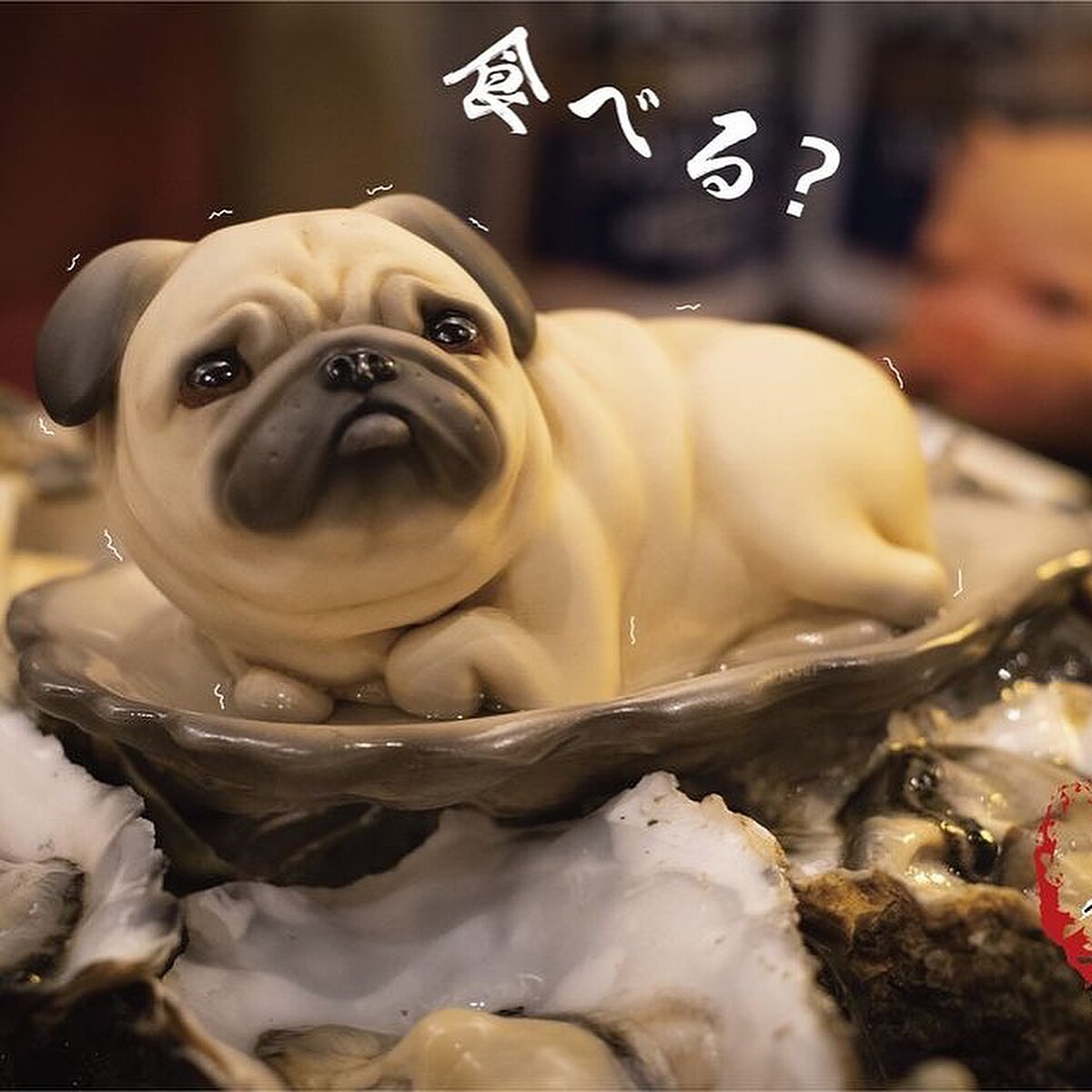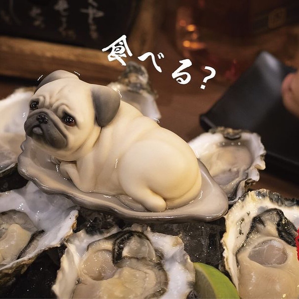 從外觀、皺摺、漸層都十分細緻,看著巴哥楚楚可憐的模樣,搭配白拋拋的誘人的外型,放在鮮蚵殼毫無違和感,讓人會心一笑!