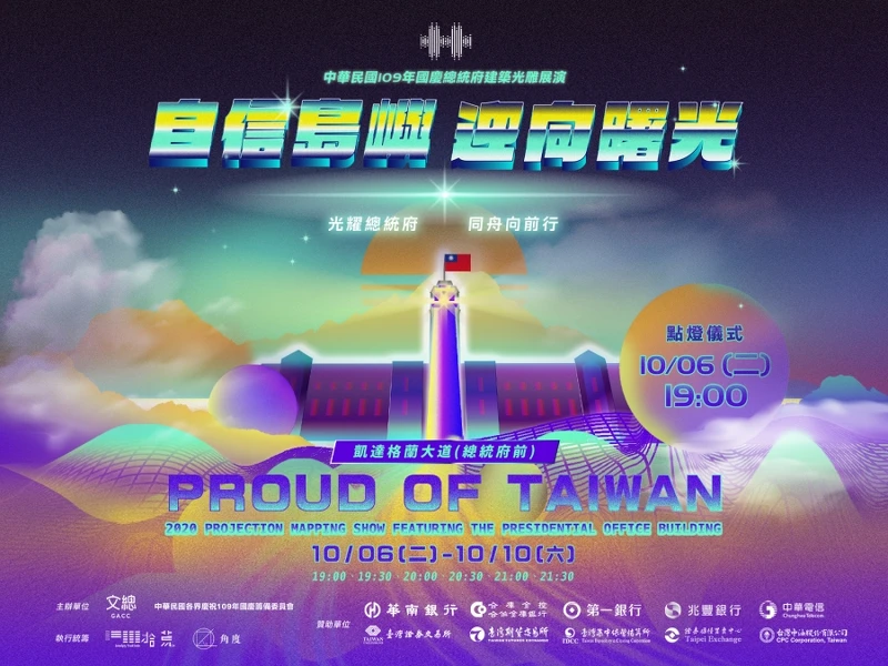 「自信島嶼 迎向曙光-中華民國109年國慶 總統府建築光雕展演」資訊: