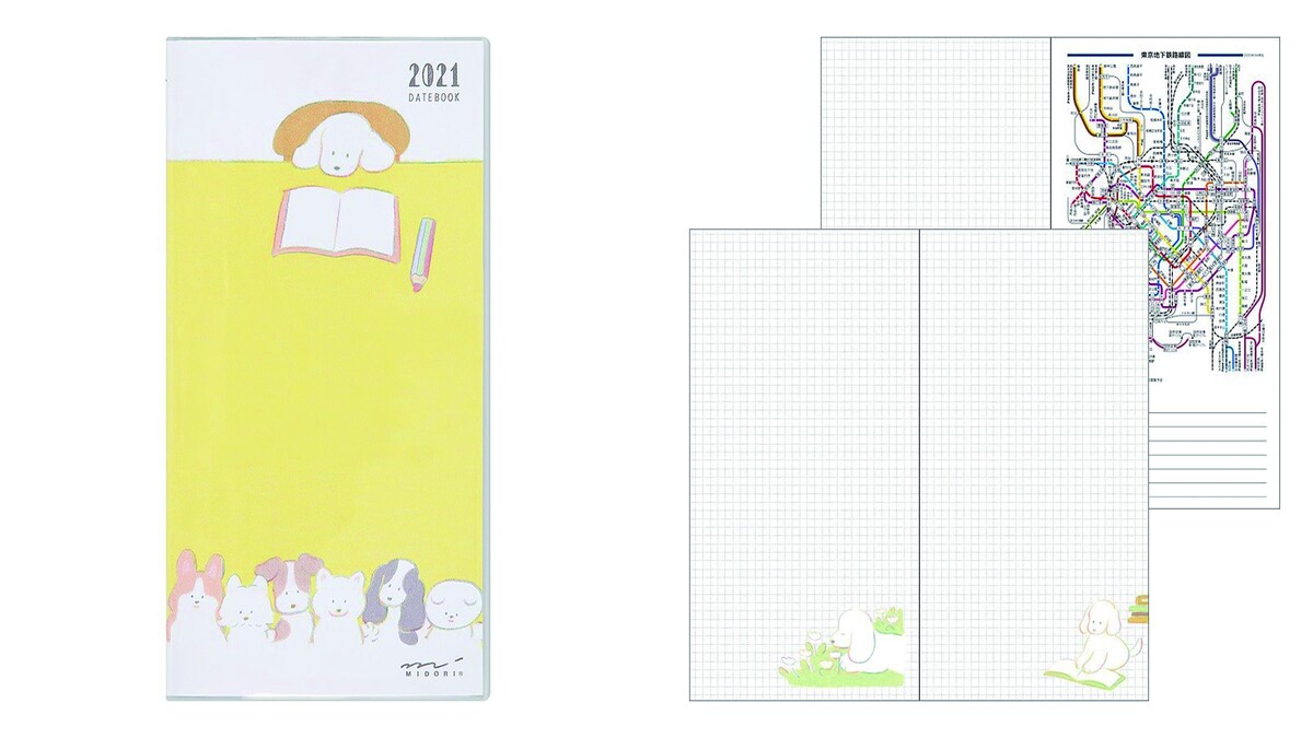 毛孩控必收!日本設計品牌MIDORI推出以溫暖黃為底色的Pocket Diary,不但攜帶方便,以「月」為時間單位的設計,能讓你做好一個月內的短期規劃,內頁不受線條侷限的方格紙設計方便靈活書寫,且每頁都有不同的狗狗圖樣,在翻頁時也處處充滿驚喜,是手帳新手的第一選擇。