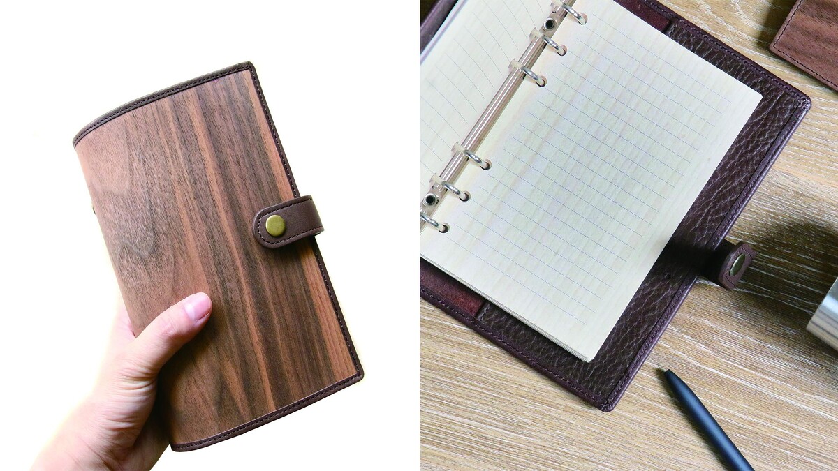 台灣在地品牌「木入三分」專注於木質生活用品的設計與開發,這款木皮革手帳能夠隨著年歲變化它的自然風格,就如同每道年輪都經歷了它的風雨。內頁紙張採用吸墨性極佳的100P道林紙,皮革套上更配置了左右各1的內夾層和可放置2張卡片的卡片層,此外,每個實木皮革皆無重複木紋,拿在手中就能輕鬆營造出質感生活態度。