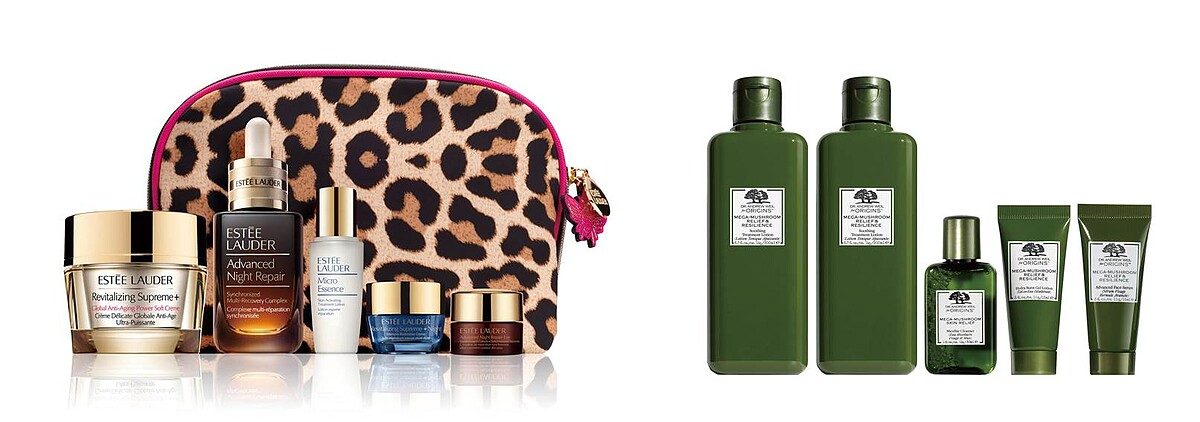 左:不出國神助攻 雅詩蘭黛 特潤無敵美肌組,特價NT6,165,價值NT9,590;右:不出國神助攻 品木宣言-青春無敵靈芝水組,特價NT2,880,價值NT4,828。