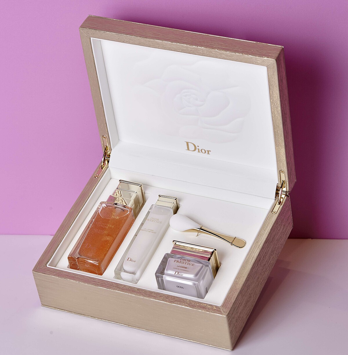 DIOR迪奧精萃再生玫瑰微導精露50ml+花蜜玫瑰凝露30ml+花蜜乳霜15ml+花蜜玫瑰美肌塑棒+美妝箱,推薦價NT12,150