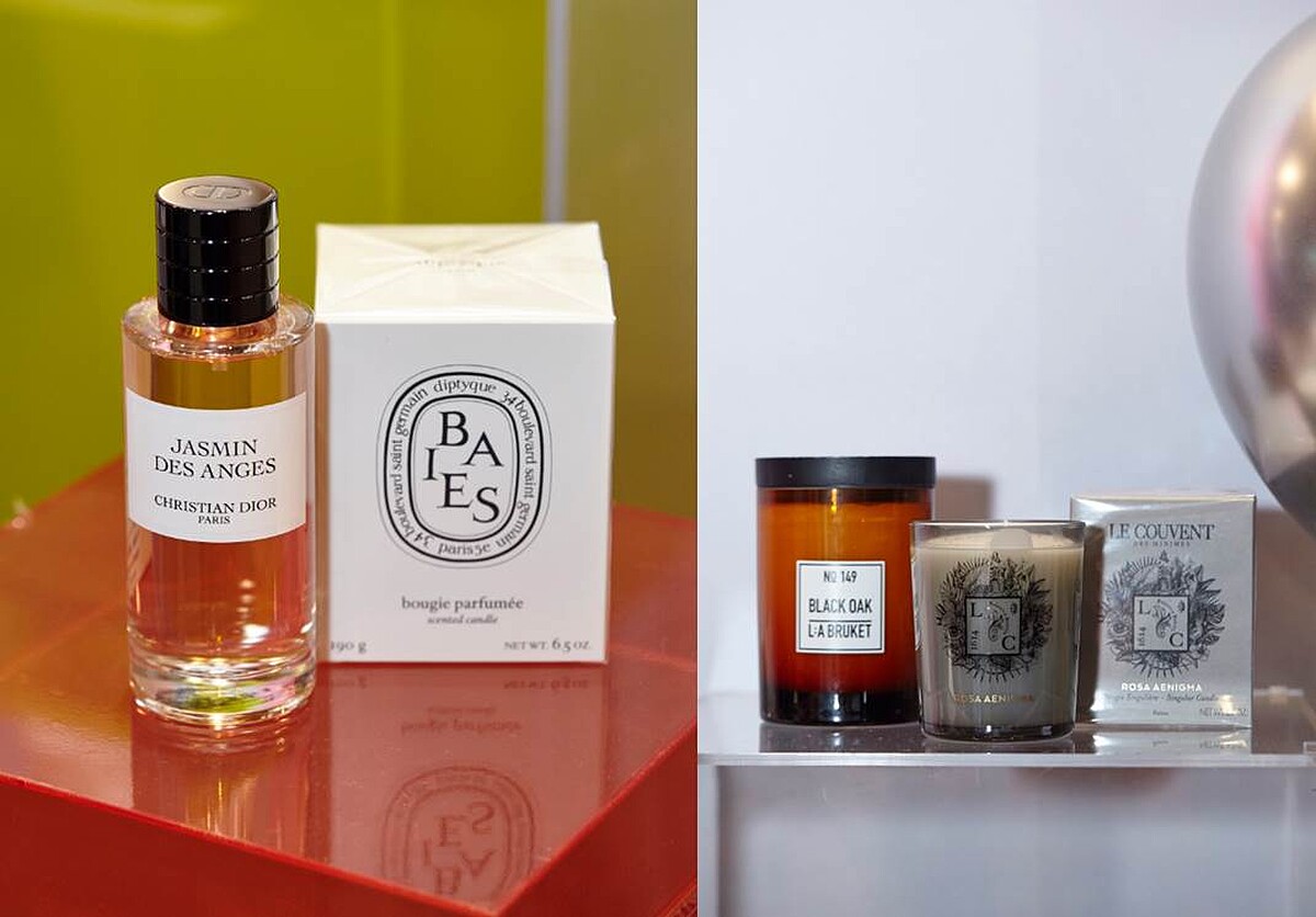 左起:Christian Dior 晚夏茉莉40ml,推薦價NT3,250、diptyque 香氛蠟燭(漿果香)190g ,推薦價NT2,100、 LA BRUKET 149香氛蠟燭 (黑橡木)260g,推薦價NT2,300、LE COUVENT北極・冷風之水木蘭花與海洋木質淡香精50ml+富麗堂皇皇后閨房香氛蠟燭 190g+火柴,特價NT3,500 原價NT3,600。