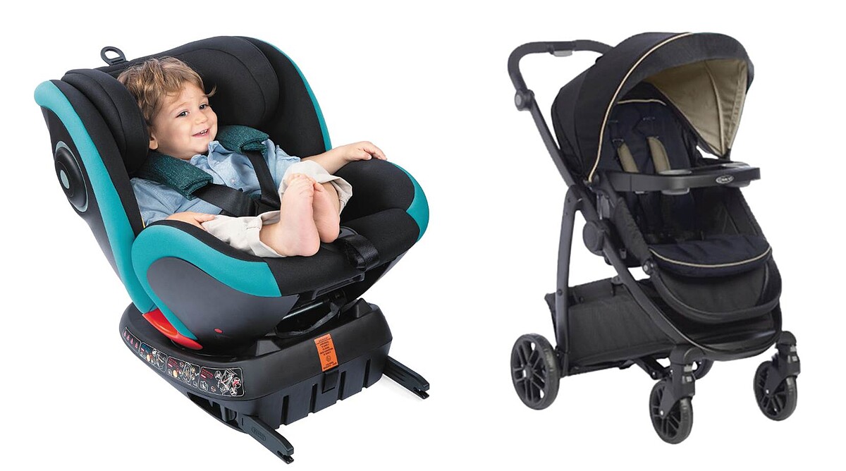 左:爸媽神隊友 chicco chicco Seat4汽座,特價NT12,900,原價NT17,900。 右:爸媽神隊友 GMP BABY 雙向手推車 特價NT 9,999,原價NT 13,500。
