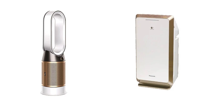 左:環境家電 Dyson Pure Hot+Cool cRYPTOMIC三合一涼暖空氣清淨機HP06, 特價NT26,900,原價NT29,900。右:環境家電 Panasonic Nanoe 12坪空氣清淨機 F-PXM55W ,推薦價NT10,900 贈SP-2103護眼檯燈+商品卡NT500。