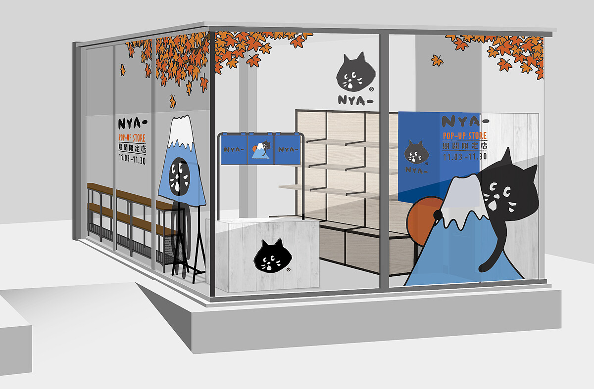 有別於NYA-一貫的黑白簡約風格,這次日本獨家釋出超療癒可愛的富士山NYA-造型圖素,用來打造亮眼的店裝及一系列限定商品!