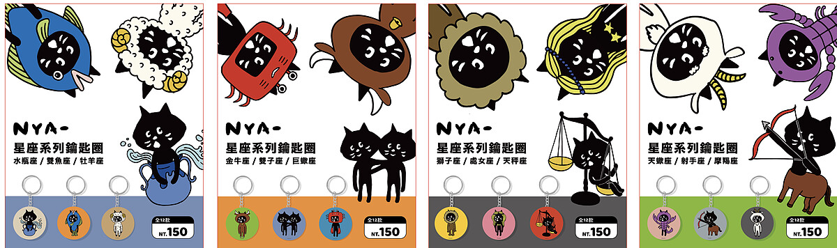 NYA-化身為天馬行空的12星座鑰匙圈,每個星座都是獨特又俏皮,貓奴們快把自己星座的黑貓扭回家吧!