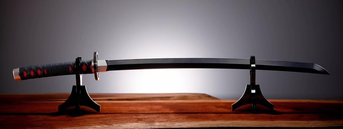 更神還原了劇中竈門炭治郎的「日輪刀」,以一比一大小尺寸製作,漆黑刀身與各處細節皆高度還原!
