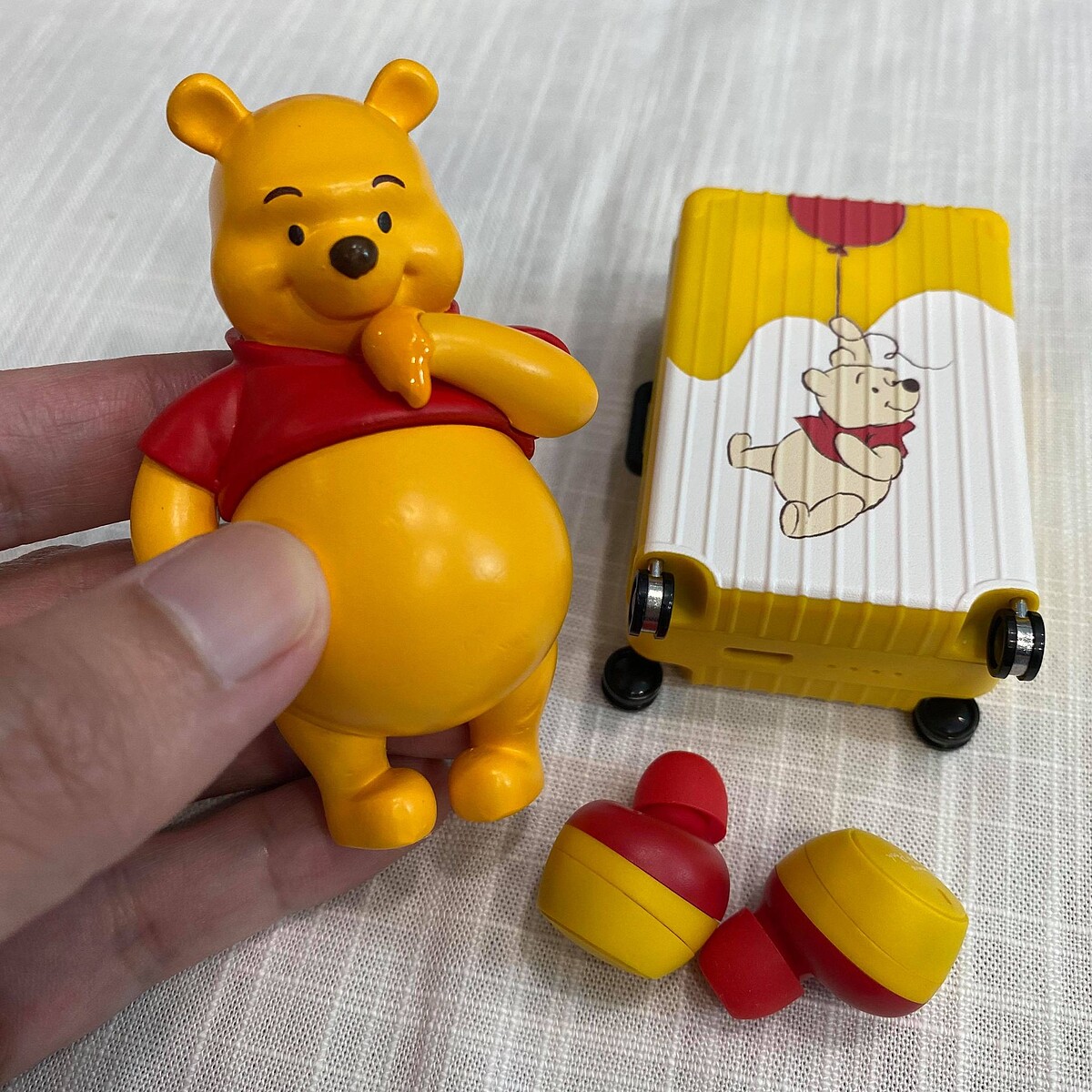 維尼控必收的則是「小熊維尼趣淘真無線藍牙耳機」,特別用迷你行李箱造型收納,加上維尼圓肚肚公仔,療癒破表!