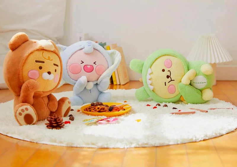 還有超火紅的KAKAO食物系列,今晚想來點Ryan鯛魚燒還是Apeach小籠包呢?圓滾滾的造型與柔軟的面料,抱起來讓人愛不釋手。小孩才作選擇,我們全都要!