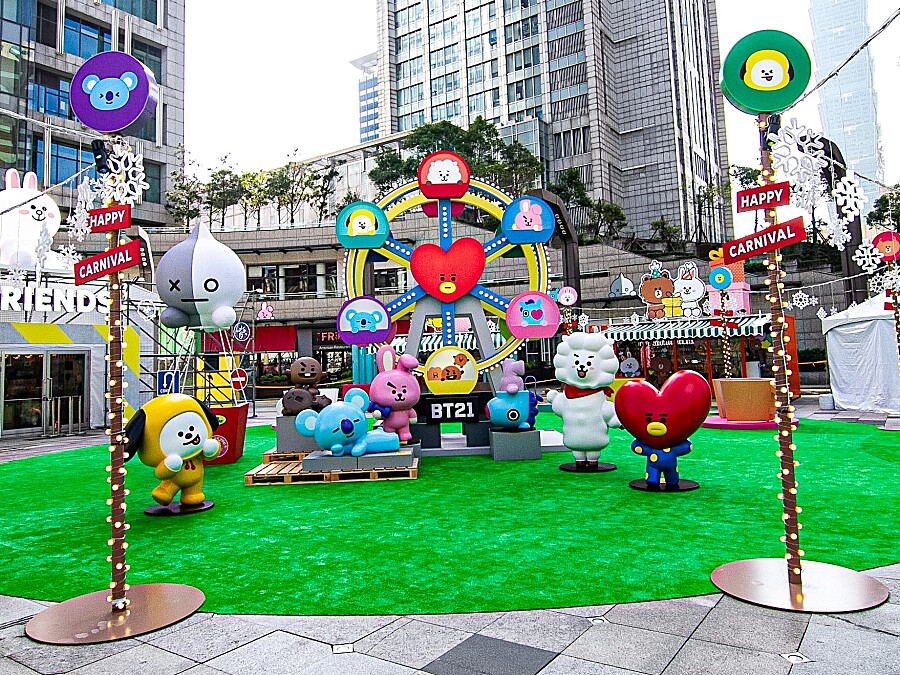 不只如此,快閃店的4面都設置打卡牆、超大型扭蛋機,好逛又好拍保證讓粉絲們心滿意足。周遭也有猿田彥珈琲、一之鄉、台灣質感女裝品牌MOBO、科技時尚的電子周邊GARMMA推出多款LINE FRIENDS、BT21限定商品,實在不能錯過這場冬季最療癒派對!