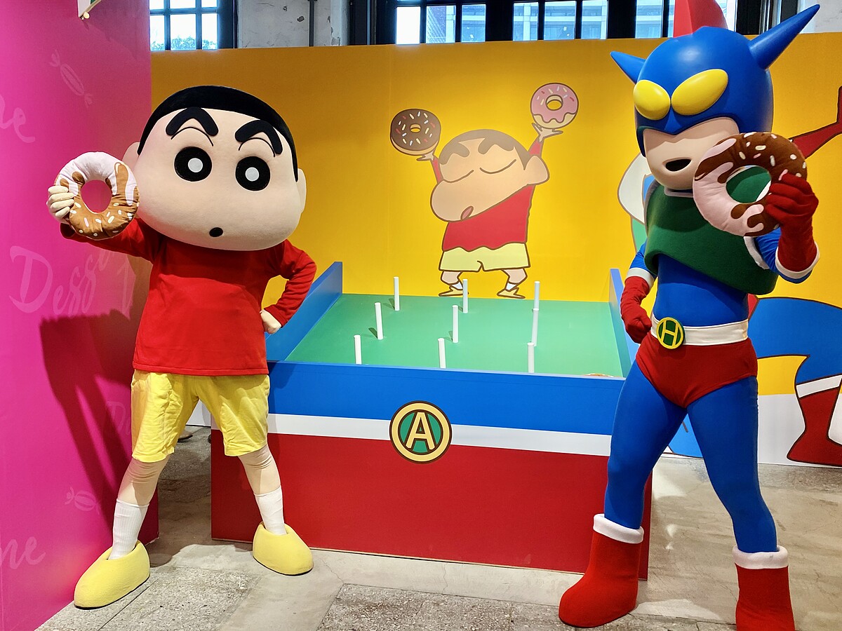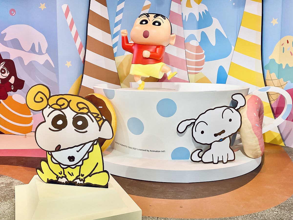 以甜點為主軸,看到五顏六色的色彩裡面藏著蠟筆小新裡的人氣角色,無論是春日部防衛隊、小白、小葵…等,在這裡都能夠找到他們的身影!