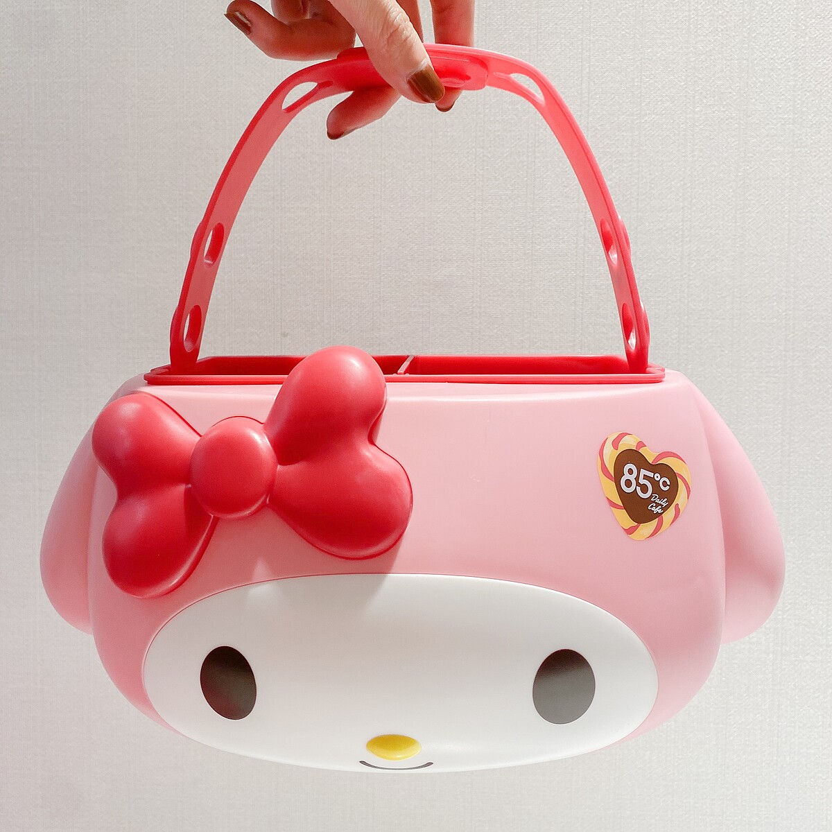 之前瘋搶的Hello Kitty置物盒在85ºC也買得到啦!這次推出兩款出兩款限量版,無論是當作野餐籃手提、掛在車子椅背,提把也可以拆下當作桌面置物盒使用!