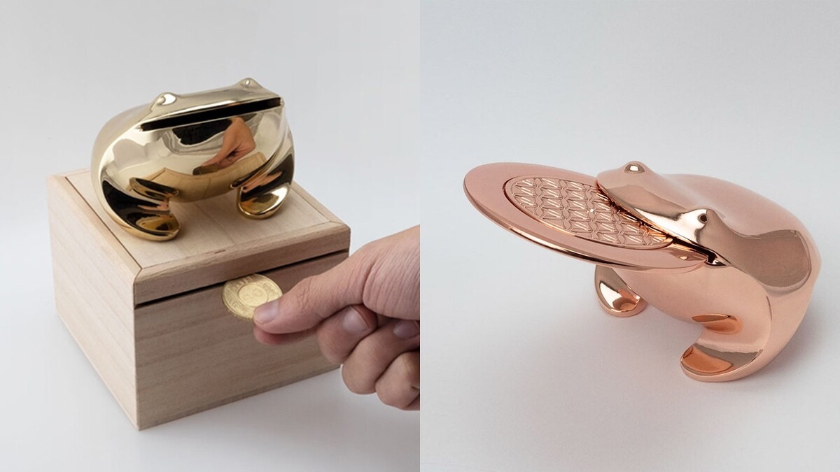 將傳統招財蟾蜍賦予現代美學並簡化的台灣品牌招財揪吉,運用多款貴金屬材質,保有蟾蜍流線形外觀,用簡約對稱的線條,呈現出其招財靈性與聚寶意象。不只嘴巴可以咬金幣,下方的木盒也能當作撲滿,可以存入隨手零錢與紙鈔。不論擺放在家中或辦公室都很適合。