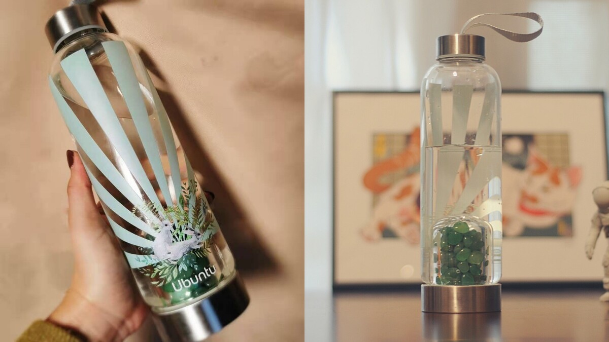 香港設計品牌ubuntu,用南非天然精礦製造水瓶,藉由不同礦石為水注入能量,包含舒緩壓力、增進財運、強化智慧等,倒入常溫水6分鐘後就能飲用。現在瓶身推出「萬物有靈」系列,不論是天鵝、鹿、金剛鸚鵡、錦雞等動物,為生活增添活力氣息。