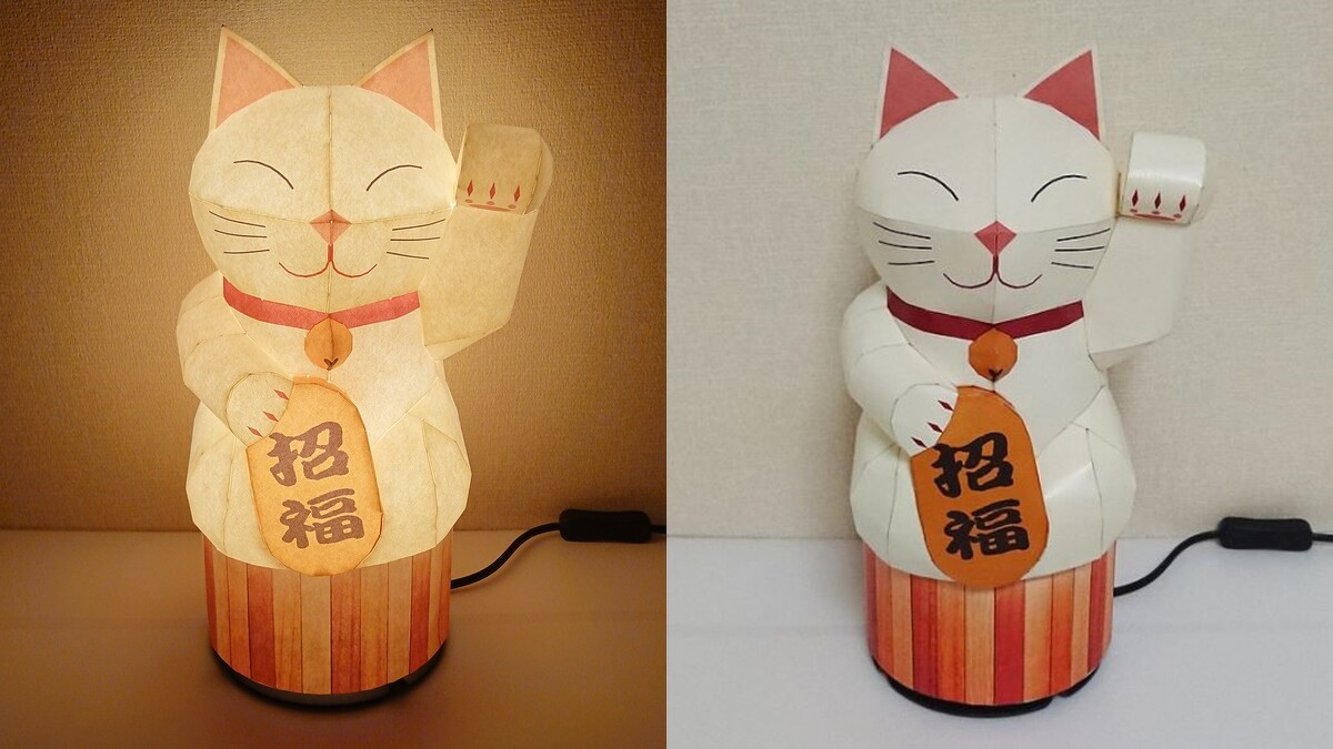採用日本紙、手工製造的招福貓燈罩,光是外型就令人心動不已,而在晚上點燈時,散發出暖黃色燈光,為家中打造療癒一角。注意得自備照明燈具,才能完整感受到招福貓的超萌魅力。