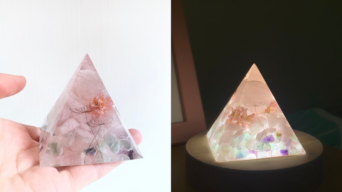 結束一整天的課業、工作後就靠手工製作的粉晶球小夜燈淨化心靈吧!以天然水晶、乾燥花製成,並有手繪植物圖案,點亮燈後為空間營造舒心氛圍。可做為紙鎮、桌面擺飾,隨時趕走心中繁雜思緒。燈座也可雷射鐫刻文字,同時也是一件充滿平靜與祝福的絕佳禮物。