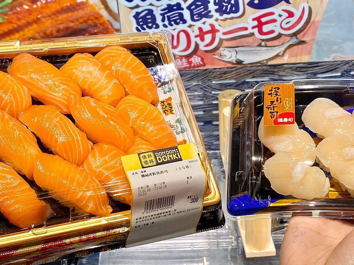 新鮮豐潤的美威鮭魚壽司以及日本産帆立貝壽司一直都是「DON DON DONKI」的經典!除此之外,「DON DON DONKI」首次嘗試於店鋪中販售活貝類。