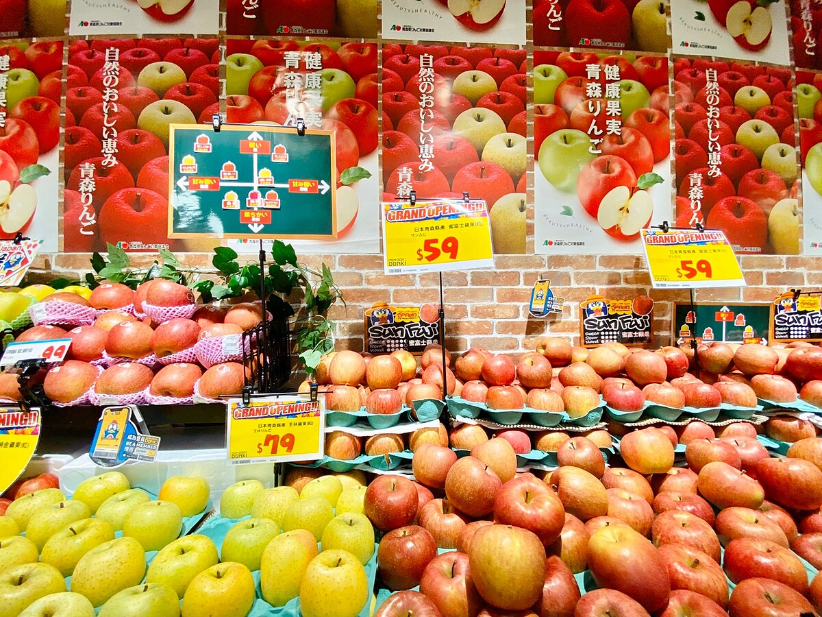 販售日本進口的水果、蔬菜、生鮮、和牛及生魚片壽司,還有琳琅滿目的熟食像是飯糰、大阪燒、日式便當…等,與日本超市的非常像!