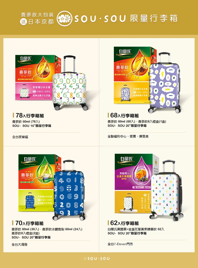 白蘭氏 X SOU‧SOU聯名行李箱活動詳情可至官網