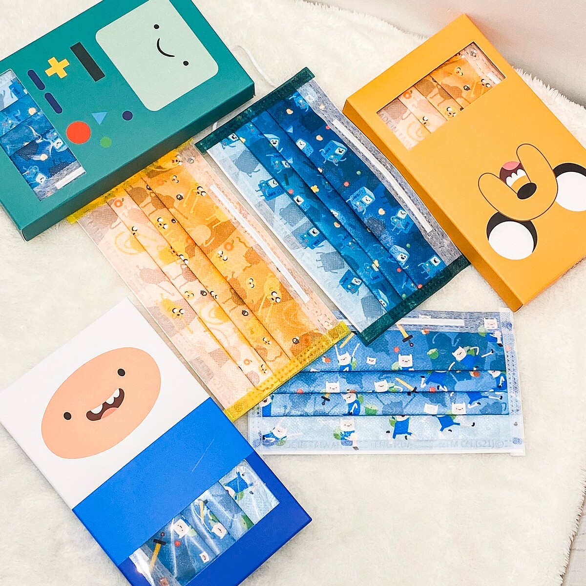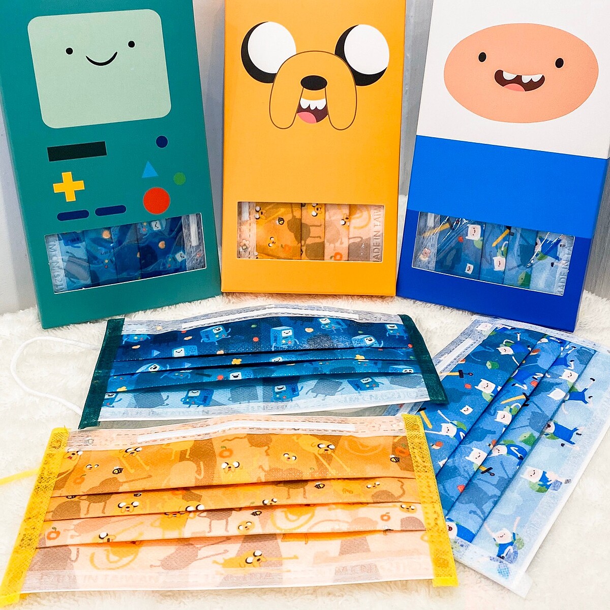 可愛與童趣感兼具的超萌口罩,以老皮為代表的溫暖薑黃色、阿寶清新的冰川藍、BMO神秘的極光綠,微微漸層刷色搭配滿版的圖案真的超級可愛,讓戴口罩這件事情更增添療癒感!探險活寶口罩為三件一組,讓大家一次擁有三種款式,
