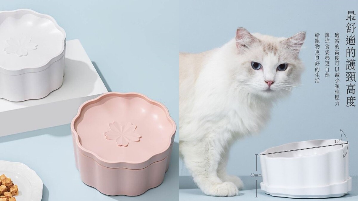 跳脫坊間貓砂盆、寵物碗設計,這款「貓方糖寵物碗」以一碗一碟的組合設計讓位時更方便!深碗可以放置主食、乾糧或水;淺碟則能為餵食罐頭、零食。外觀除了是吸睛的櫻花造型外,更有護頸的適當高度方便進食。