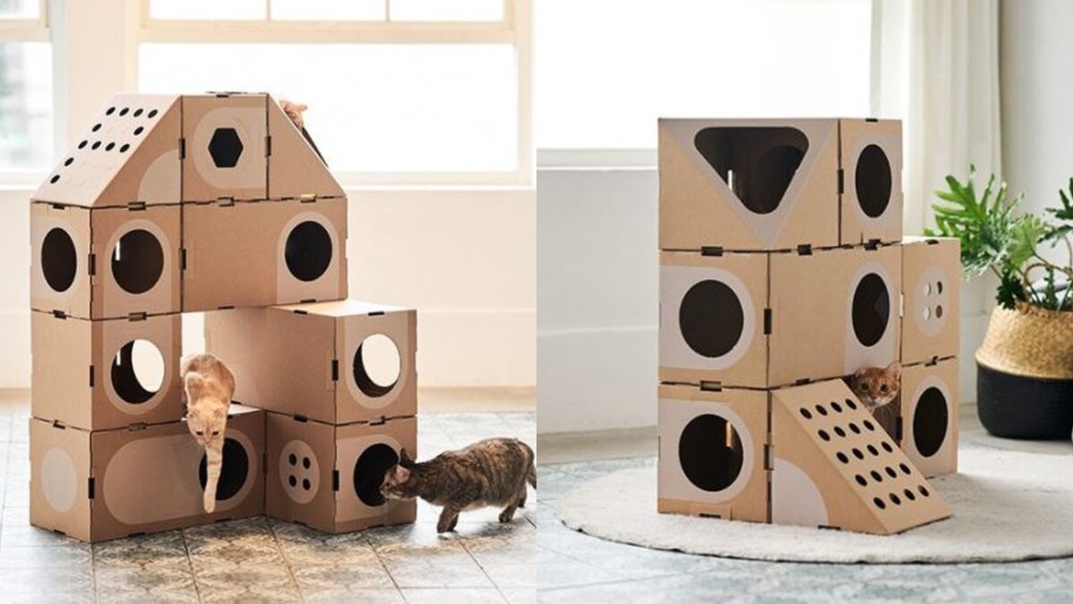 小空間也能放置的「貓室」,就像是貓咪的樂高城堡!用貓咪最愛的紙箱設計出發,每個都能承重20公斤,並像是樂高一樣能隨意組合、可輕易拆掉做變化,最高疊到7層高。不僅主子玩得開心,讓組裝的貓奴們也能獲得樂趣。
