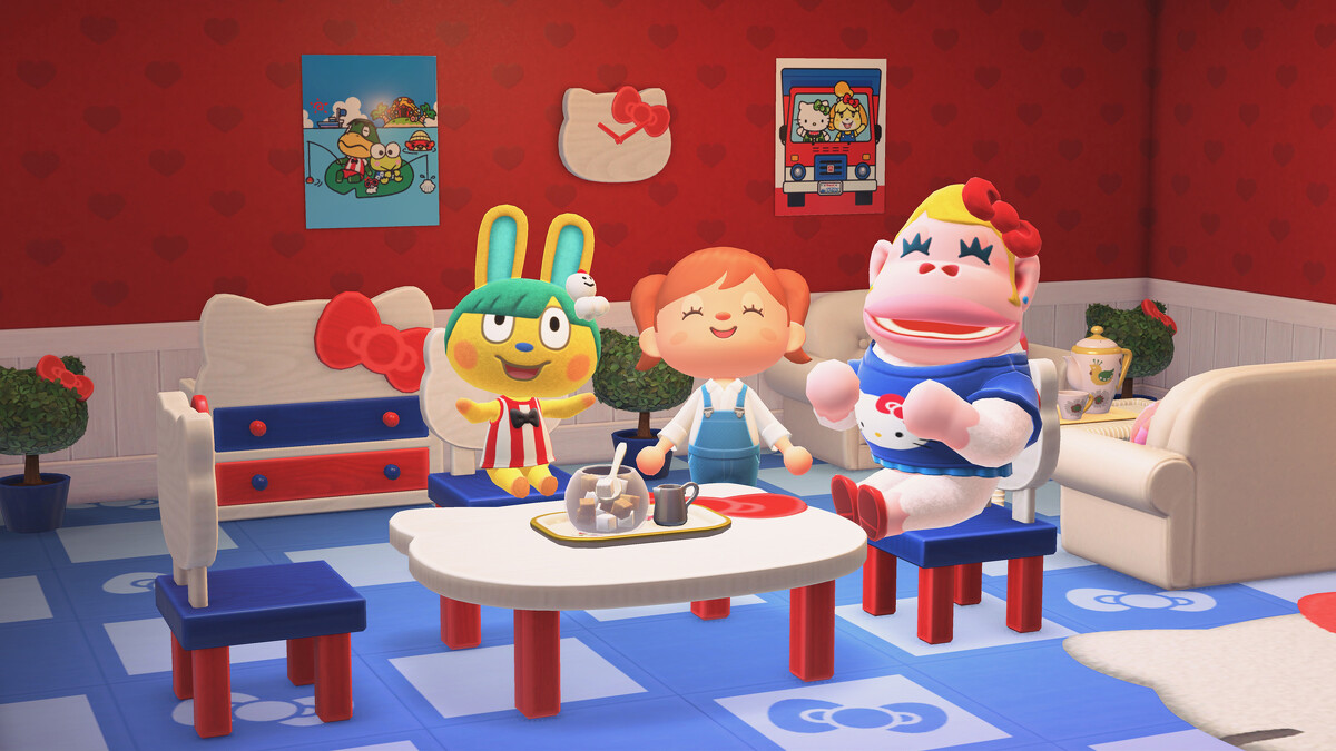 在《集合啦!動物森友會》中點觸動物森友會amiibo卡的Sanrio characters合作活動,可以訂購對應海報。而在3月18日的更新資料(Ver.1.9.0)後,除了海報,更可以訂購Sanrio characters合作活動的家具和服飾,同時可以呼叫卡片上描繪的居民到露營地啦!