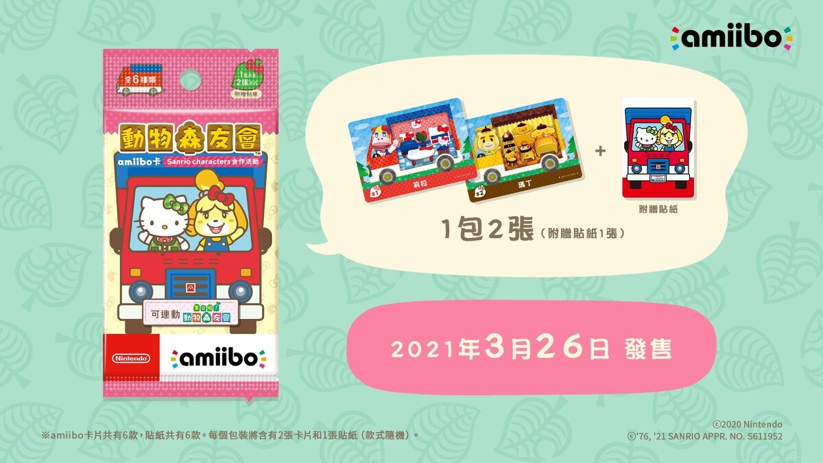動森X三麗鷗新版amiibo卡發售日期:3/26(1包2張,附贈一張貼紙,款式隨機)