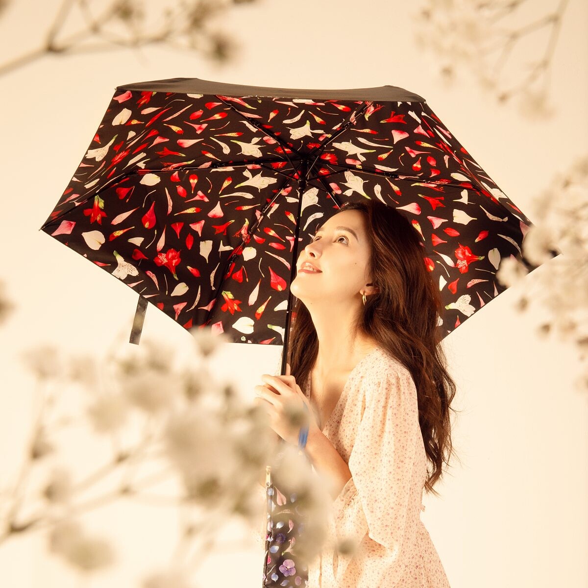 外觀素面設計,將花色設計隱藏在內傘面,一抬頭宛如被滿天花樣流星雨包圍,真的太美了!