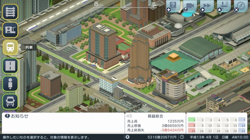 玩家們扮演鐵路公司社長,從鋪設鐵路、建立公共建設,在街道設置車站,促進城市周邊發展,打造出一座屬於你的繁榮的都市吧!