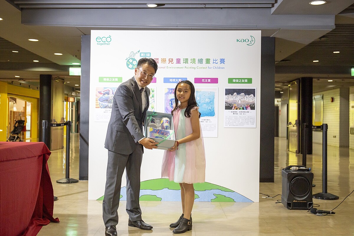 展覽開幕的第一個週末,花王也特別邀請去年參加國際兒童環境繪畫比賽獲得優異表現的五位得獎者與家人蒞臨現場、共襄盛舉;花王(台灣)董事長兼總經理大熊康生也特別出席致贈充滿紀念意義的禮物給五位「花王Kirei小將」,鼓勵未來主人翁從小思考環境保護,都能成為愛護地球的環保小尖兵! 其中,來自屏東游靚恩同學的畫作「未來的顏色」,從全球各國家參與高達12884件作品中脫穎而出,得到了首獎地球大賞的榮譽,也歡迎民眾前往欣賞孩子們精彩的創作,一同分享這份榮耀!