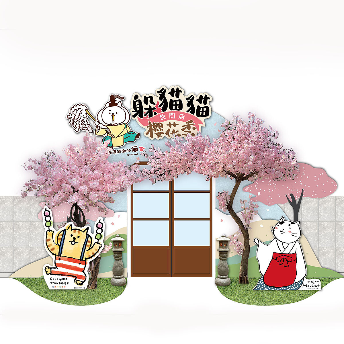 躲貓貓櫻花季快閃店集結了懶洋洋貓之助、反應過激的貓、貓小姐Ms.Cat等三位貓明星打造了「粉色櫻花貓神社」、「反應過激的貓櫻花廟會」、「懶洋洋喵之助櫻花喫茶屋」、「貓小姐Ms.Cat櫻花緣廊」等打卡景點,讓大家在貓咪的圍繞下享受日式風情與夢幻的粉嫩櫻花季,即使不用出國也能大拍美照!