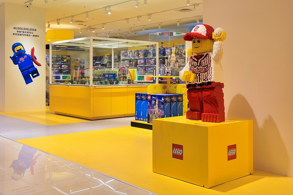 這間中台灣首間的樂高授權專賣店,入口還有兩隻高約170公分的巨型人偶「火箭人」、「棒球人」。並同樣擁有「積木自選樂」、「人偶自選樂」、「人體掃描機」、「樂高AR互動盒」、「樂高雷射鐫刻文字服務」、「得寶遊戲區」等特色服務,創造出獨一無二遊樂空間,讓各年齡層消費者皆能輕鬆感受這來自丹麥的快樂因子。
