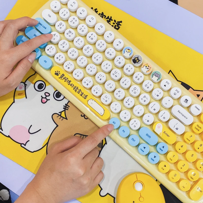 一整組貓咪無線鍵鼠組真的爆炸可愛!滑鼠&鍵盤使用無線USB,免安裝隨插即用。