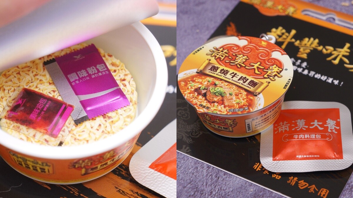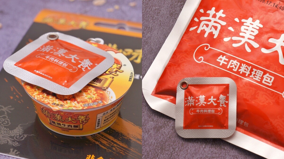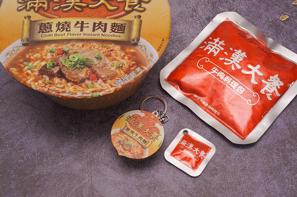 最讓人驚喜的是連經典的牛肉料理包也做出來啦,連料理包的觸感都做得非常逼真!彷彿只要打開碗蓋,撕下包裝、沖下熱水,就能享用到一碗香噴噴、熱騰騰的滿漢大餐蔥燒牛肉麵泡麵啦!