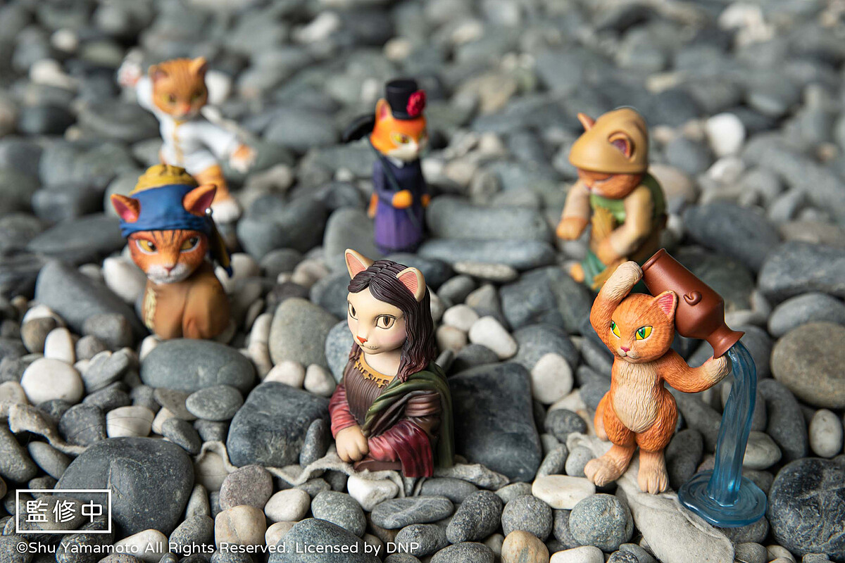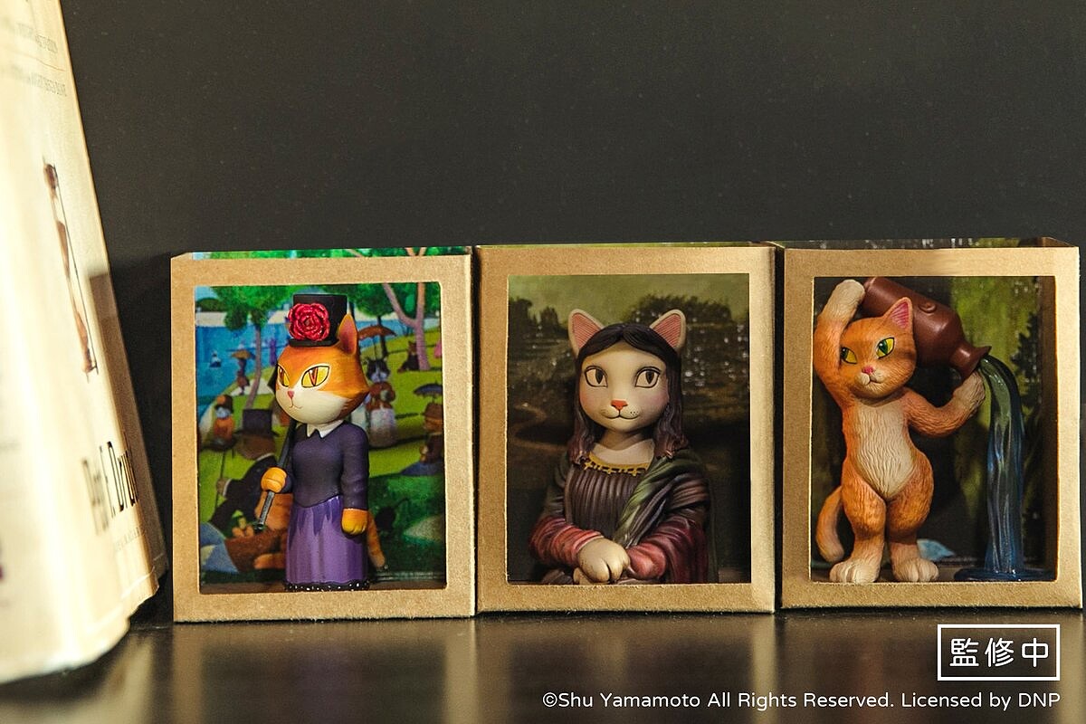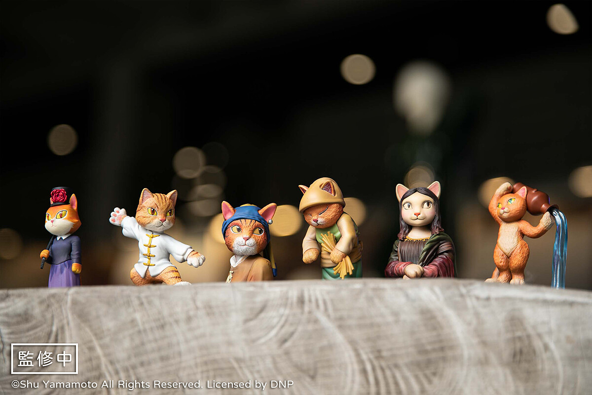 首波精選推出山本修Shu Yamamoto老師「貓‧美術館CATART」6款經典作品,由日本官方與台灣原型師團隊攜手合作,經過長達1年的交流討論,共同打造出六座仿真版實體「貓‧美術館CATART」公仔。