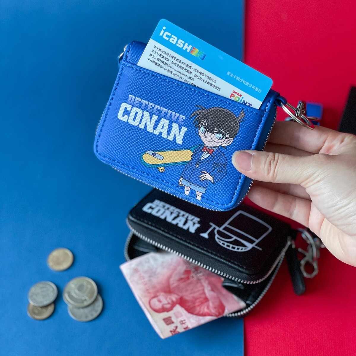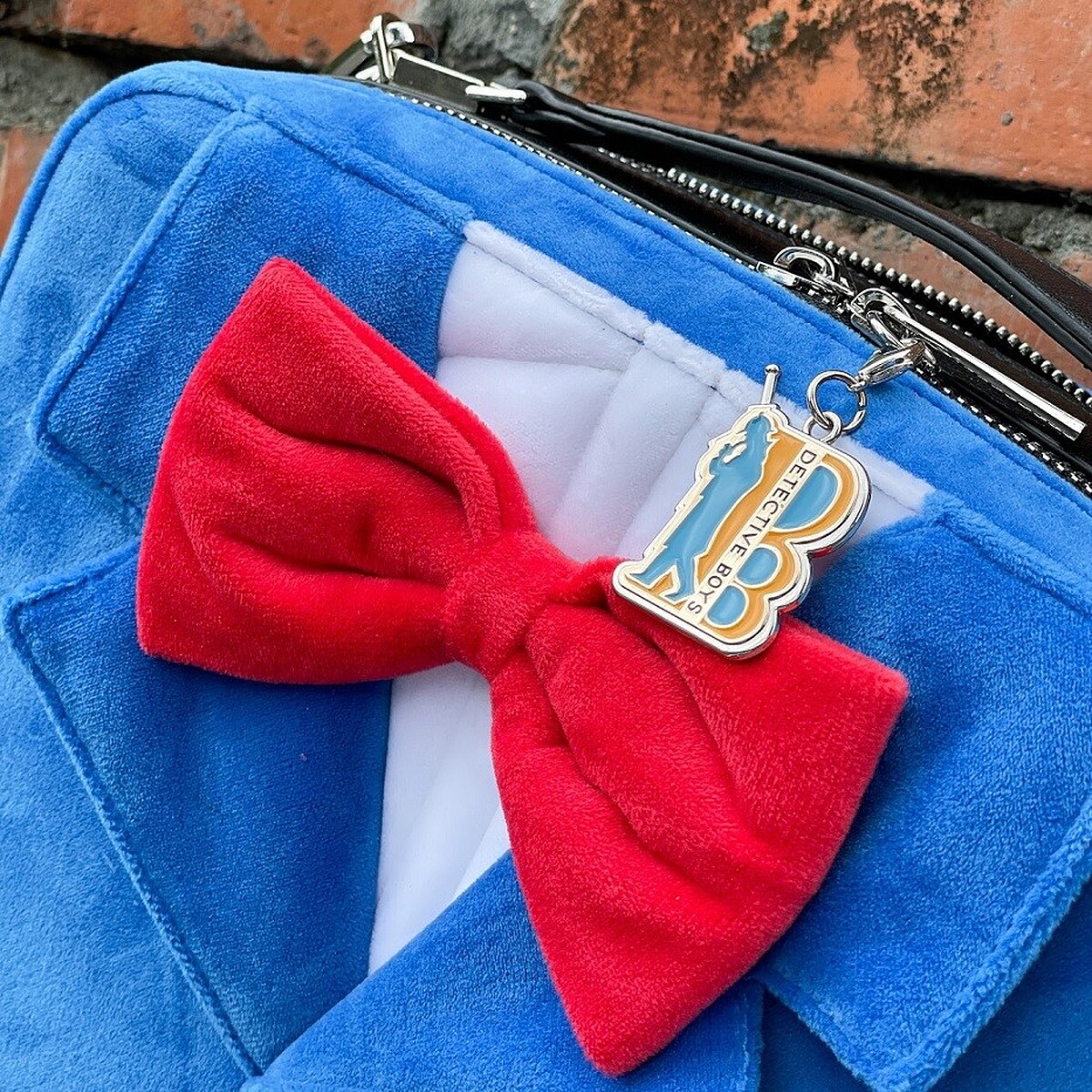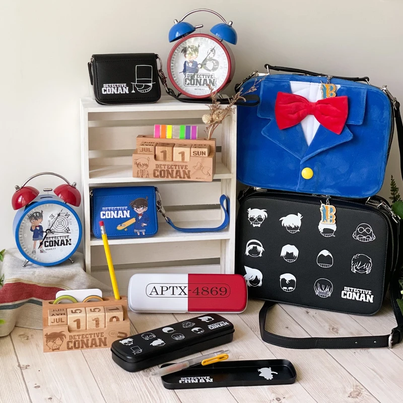 其中一款肩背手提兩用包最吸睛,除了以藍色西裝外套搭配紅領結的經典柯南造型作為設計外,更使用少年偵探團徽章設計來做拉鍊片,還有前後雙拉鍊夾層,可肩背、手提,實用又帥氣,絕對讓柯南迷為之瘋狂!