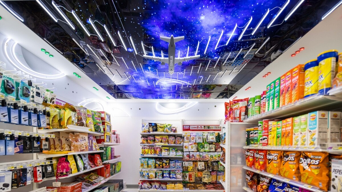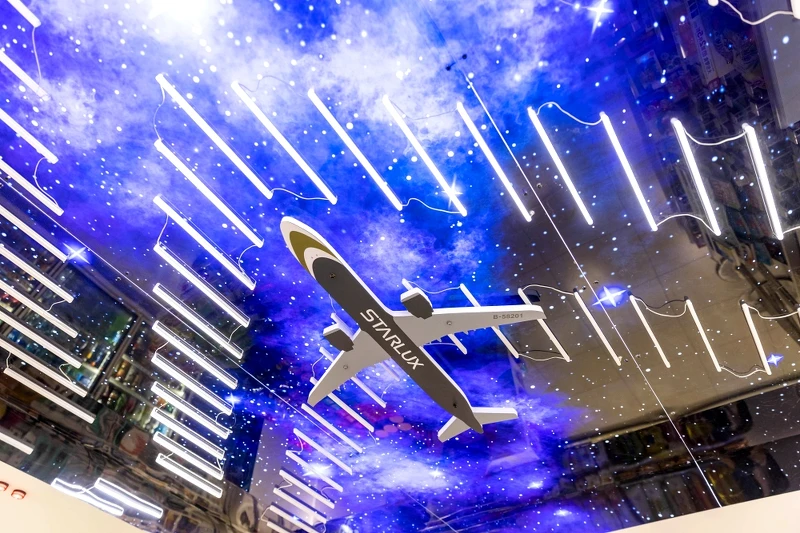 走進店內,勢必會被貨架區天花板牢牢抓住目光!除了有立體裁型飛機燈板,搭配著可變換白天黑夜燈光的天空背景,塑造神秘宇宙氣場。還有精緻的飛機場模型主題桌,紓解你我想出國的難耐之情。