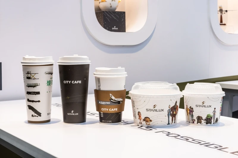 最後別忘記帶一杯CITY CAFE回家!這裡因應不同容量提供星空飛行軌道款(限定特大杯使用)、飛機起降款(限定大杯使用)兩款獨家聯名杯身設計,星空飛行軌道款更有以VIP行李標籤設計的專用杯套,選擇熱飲都能享有質感尊爵氣息。另外還有以「星宇航空地勤車隊」作為設計的現萃茶杯、星探者關東煮碗,逼人整套入手收集!
