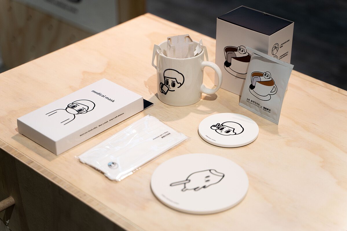 不僅如此,「消極男子」更操刀設計三款獨家聯名周邊商品,以「夏日生活」為題,將筆上人物帶進了現實生活,從口罩、咖啡掛耳到泡泡架,每一款都充滿厭世Q感,實在好想全收啊!