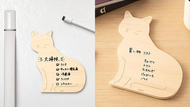 隨時有好點子乍現,就趕快寫在這木製白板上!用萌貓身體作為外型設計,附有磁鐵的迷你尺寸能吸附於冰箱或鐵製物品上,更有一隻白板筆能隨手記下代辦事項。是不是很方便呢?