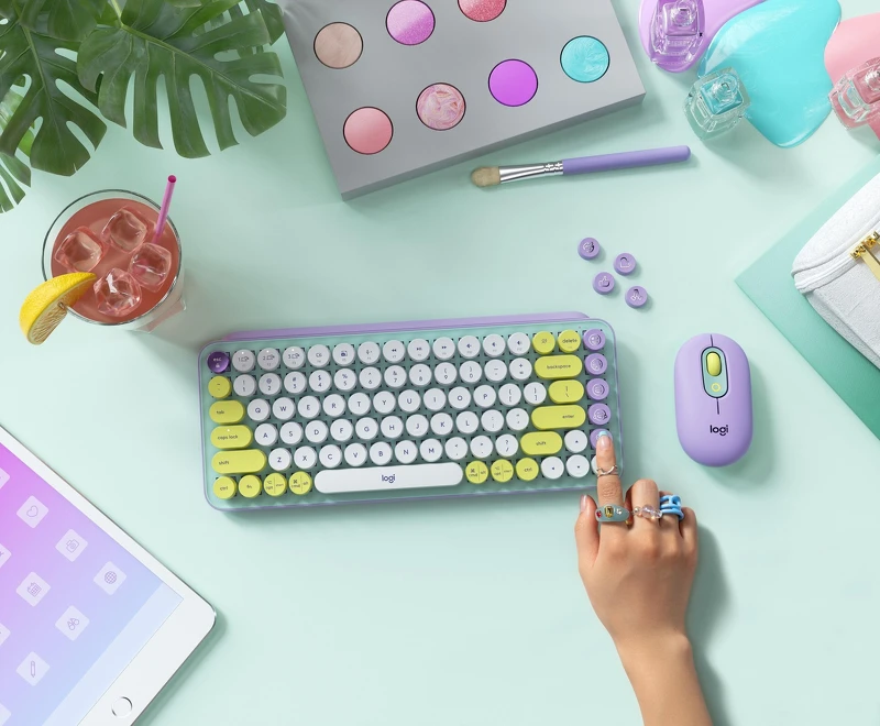 Logitech POP KEYS無線機械式鍵盤共有3款顏色可以選擇,「夢幻紫」以莫蘭迪色為基底,粉綠、淡紫、白色搭配溫黃,夢幻指數爆表;「魅力桃」為霓虹珊瑚粉搭配覆盆子莓紅,浪漫配色一秒狙擊少女心;「酷玩黃」為經典街頭黃搭配黑灰兩色,適合有個性的你!