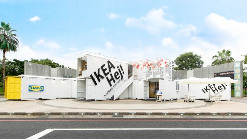 繼先前於台北通化夜市、台中逢甲夜市開設「IKEA百元商店」後,現在再度打造創新店型「IKEA Hej 行動商店」!鄰近文化夜市商圈,由7個純白色貨櫃組合,選用二手貨櫃再利用,也基於易於拆卸及運送特性,能重複使用並重組,符合品牌環保永續理念,更能方便移動到各城市、接近人潮聚集商圈,大大增加購物便利性。