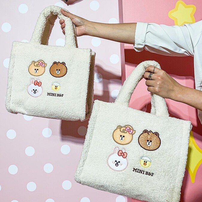 外出必備的袋子上有超萌的MINI BROWN & FRIENDS造型貼布繡,內裡更添加小口袋方便收納,採用絨毛材質、柔軟紓壓。